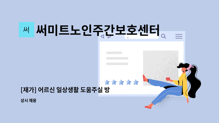 *업무내용 : 전반적인 요양업무, 프로그램 및 식사 도움, 청소, 송영 *자격증 : 요양보호사 1급, 운전면허 보통 2종 이상 (실제 운전가능자 우대 -보유차량 : 스타렉스, 카니발, 카렌스) * 08시~18시 근무 (휴식시간 2시간 책정) * 평일 하루 휴무, 토요일 근무