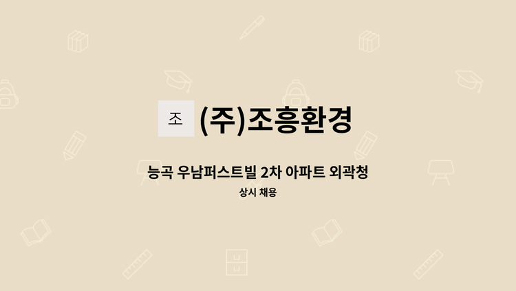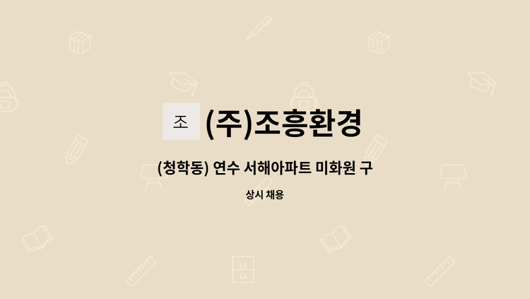시흥1차에이스 아파트 미화원 모집 * 월~금 08:30 ~15:30 휴게시간 11:30-13:00 * 격주토 근무 08:30-11:30 * 월급여 1,307,310원 * 미화반장님 010-****-**** (*개인정보가 자동 블라인드 됩니다.) 통화 후 면접