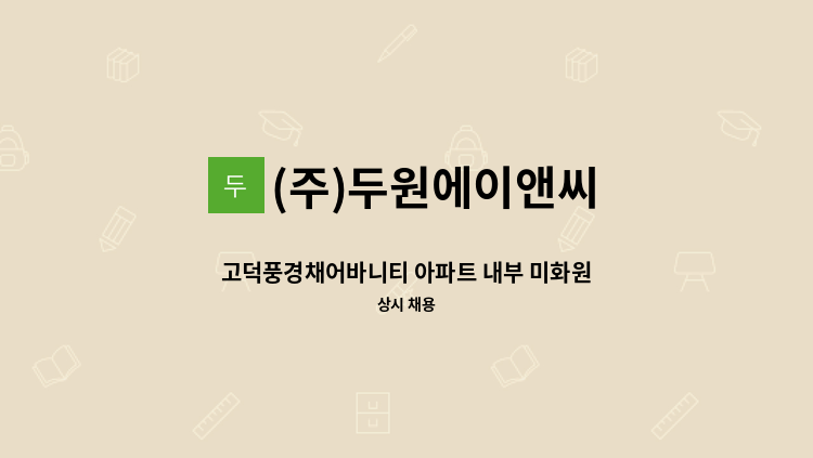 지축동 지축역 센트럴푸르지오아파트 청소업무 / 주6일근무 월~금 09:00~16:00 (휴게시간 12:00~13:00) 토 09:00~12:00 / 월 1,477,730원 / 채용담당자와 통화 후 면접 진행