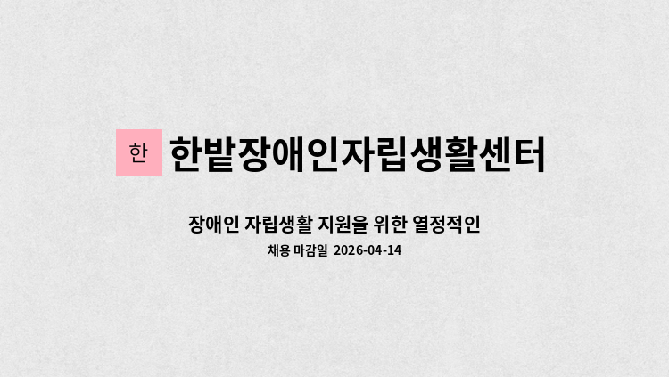 ※ 근로지원이란? 주된 업무수행은 가능하나 장애로 인해 부수적인 업무수행에 어려움을 겪고 있는 중증장애인 근로자에게 근로지원인을 배치하여 부수적인 업무수행을 지원합니다. ※ 사무직으로 워드와 엑셀 작업이 필요함. ※ 접수방법 : 이력서 메일 발송 ※ 채용안내 : 채용자 개별 안내(선착순 채용 마감될수 있음) ※ 급여 : 시급 8,720원, 주휴수당, 조건 충족 시 4대보험 가입 ※ 근무시간 : 월~금 1일 6시간(15:30~22:00), 휴게시간 30분 포함