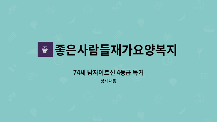 - 4등급 75세 남자 어르신 - 월~금 주 5일 근무 - 식사준비, 청소 깔끔하게 하시는 분, 말벗