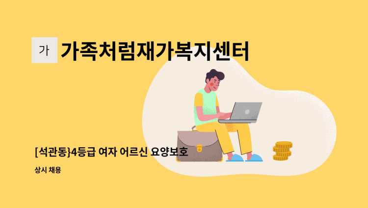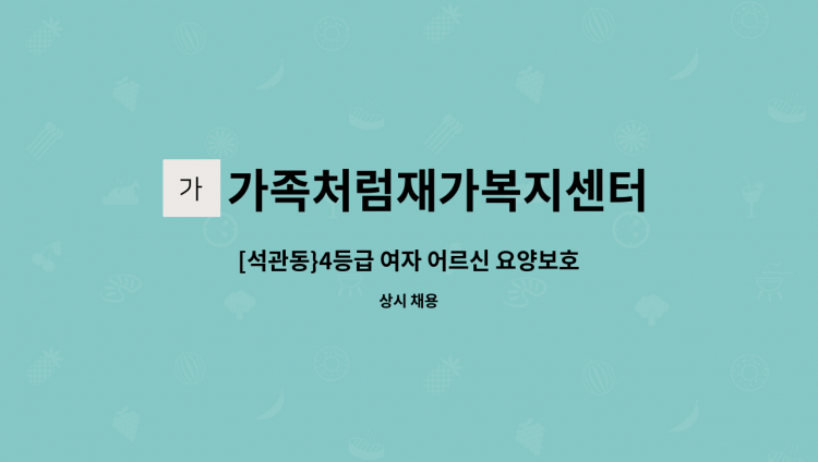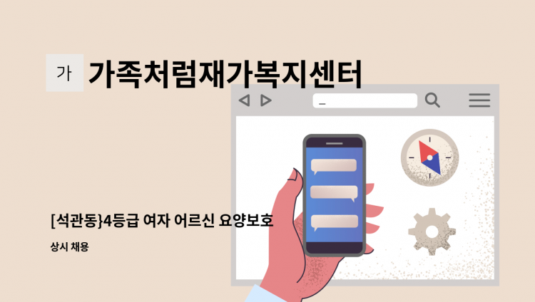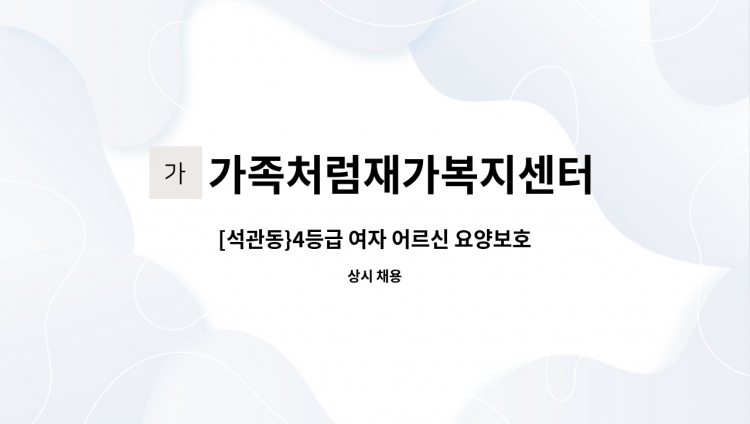4등급 78세 독거 여자어르신 10:00~13:00 시급: 13,000원 (주휴수당 포함) 24일 근무시 인센티브 추가 지급 우천으로 비근무시 근무시간 보장 음력 초하루, 양력 27일 휴무