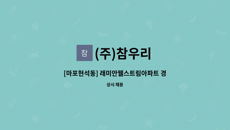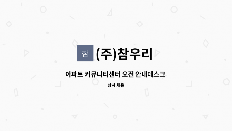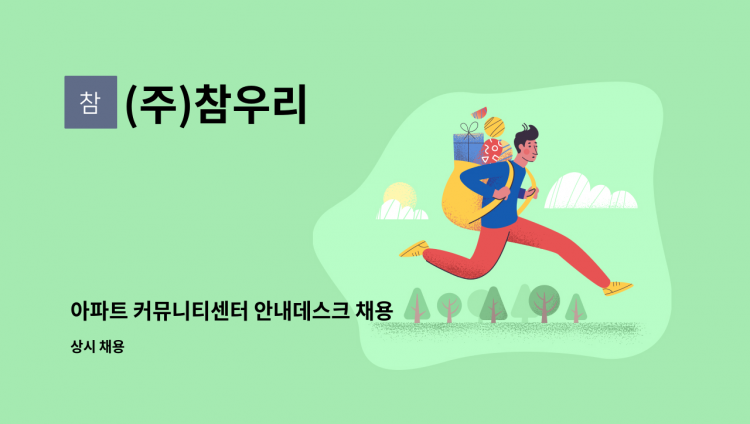 - 아파트미화원(즉시출근가능자) - 근무시간: (월-금: 9:00-16:00 / 격주토: 8:00-11:00) - 급여: 1,420,924원 - 휴게시간: 1시간 - 아파트청소 유경험자(우대) -계약기간:3개월(갱신연장가능) - 팩스지원(02-****-**** (*개인정보가 자동 블라인드 됩니다.)), "상단에 반드시 김포한강미화지원)" 표기 하시면 개별연락드립니다. -지원문의:031-****-**** (*개인정보가 자동 블라인드 됩니다.)