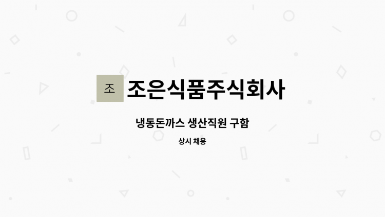 냉동 돈까스 공장으로서, 돼지고기 부분 작업된것을 포장된 원료를 받아,개봉, 해동,절단,배합,성형,급속동결,포장,유통 의 과정을 거쳐 생산함. 생산현장내의 모든 파트의 업무 수행함.