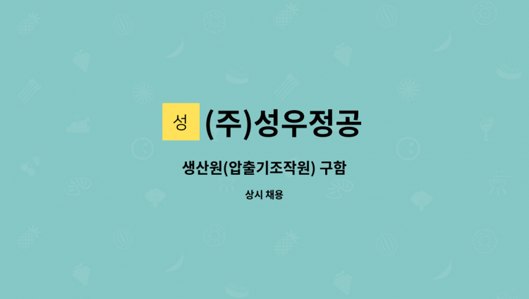 생산팀 압출성형기 조작원 및 사출성형기 조작원 구함 보조업무 포함