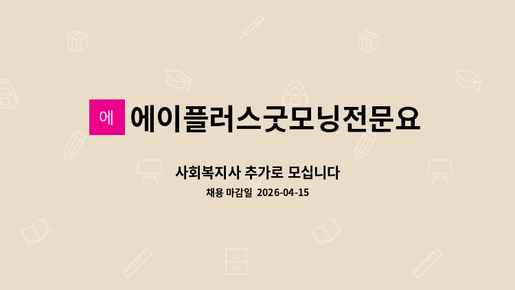 - 근무시간 : 9시~12시 - 5등급 혼자 사시는 여자 어르신 - 공단 치매교육 이수자만 지원가능