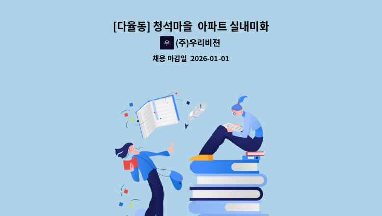 - 직무 : 신현이편한세상 하늘채 아파트 미화 - 근무시간 : 평일: 09:00 ~16:00/ 토요일 09:00~12:00 - 급여 : 1,477,648원 * 복지카드소지자 우대이며 일반인도 채용