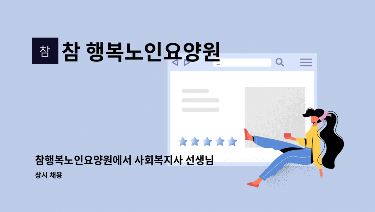 참 행복노인요양원 요양보호사 선생님을 구합니다. 이력서 제출 후 필히 시설이나 개인연락처로 연락바랍니다.