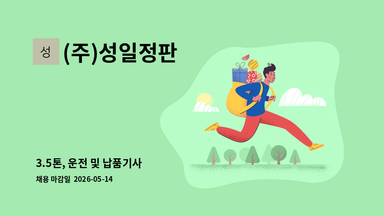 1종 운전면허 필수. 3.5톤 1톤 운전 가능하신분 모집합니다. 국가 공휴일 휴무이고, 주 5일입니다. 박스 제조 업체라서 납품가야할 물량 나오면 지게차로 차에 실어서 거래처에 내려 주는 업무 입니다. 거래처 특성상 하차할때 손으로 내려주는곳도 있습니다. 지게차 가능하시면 좋습니다. 청년내일채움 하실분들은 신청해드립니다. 함께 오래 일하실분 모집합니다. 연락주세요. 담당 대리 : 010-****-**** (*개인정보가 자동 블라인드 됩니다.)