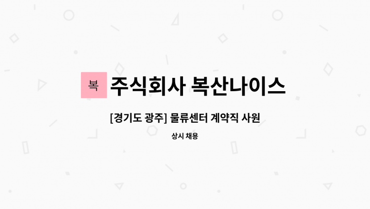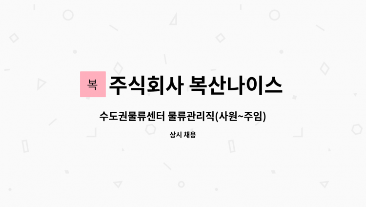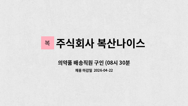 입고 : 입고되는 의약품과 수량을 확인하는 작업. 근무시간 : 월~금 10:00 ~ 16:00 (휴게시간 30분) 2021년 시급 : 8720원 2022년 시급 : 9160원 <<부산고용센터 채용대행건>> ★입사요건 확인 후 반드시 입사지원 의사 있으신 분만 지원 바랍니다. 실업급여 구직활동만을 목적으로한 지원은 자제바랍니다.