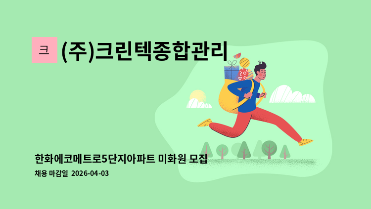 *달빛마을2단지 라이프아파트 미화 - 급여 1,079,900원 -복지카드소지자우대