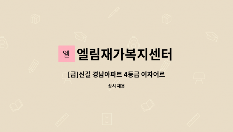 ★ 84세. 4등급 여자어르신.경도치매 ★ 스스로보행가능. 말벗. 점심도움.일상적업무 ★ 13시~16시까지(3시간). 월~토.주6일근무 ★ 오후에는 혼자거주(아드님출근후) ★ 반려견있음(얌전함) ★ 목욕,세면도움필요 없음 ★ 교회신도(취미:찬송) : 말벗에 참고해 주세요 ★ 한국분원하심 ★ 따뜻한 마음으로 오래동안 함께 일하실분 원하심 ★ 2월26일부터 근무시작 입니다.