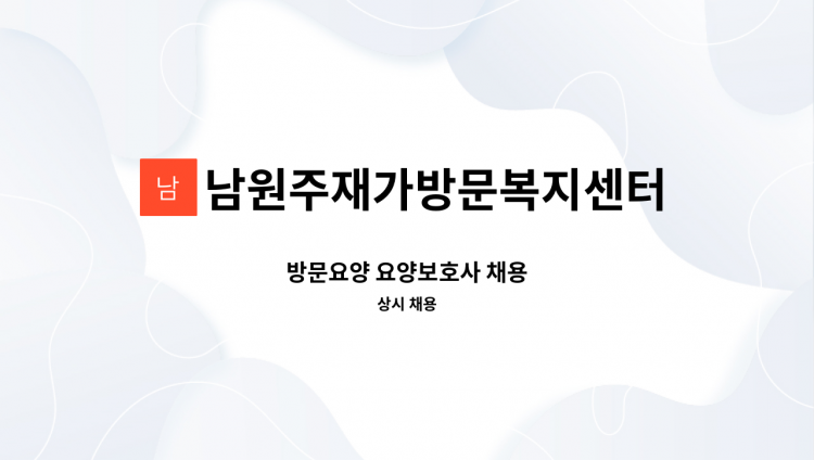 [방문 요양 하실분 구합니다.] * 한국 폴리텍 대학 (원주캠퍼스) 부근 4등급 남자 어르신 - 시급 11,600원 - 월~토 오전 07:00 ~ 10:00, 오후 17:00 ~ 20:00