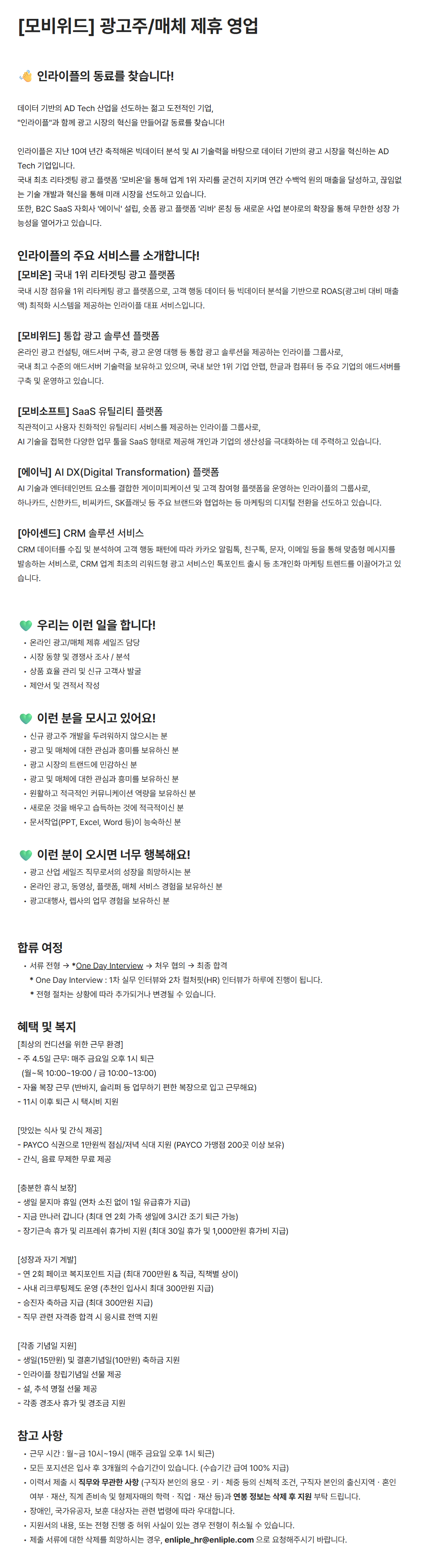 [인라이플] [모비위드] 광고주/매체 제휴 영업 채용