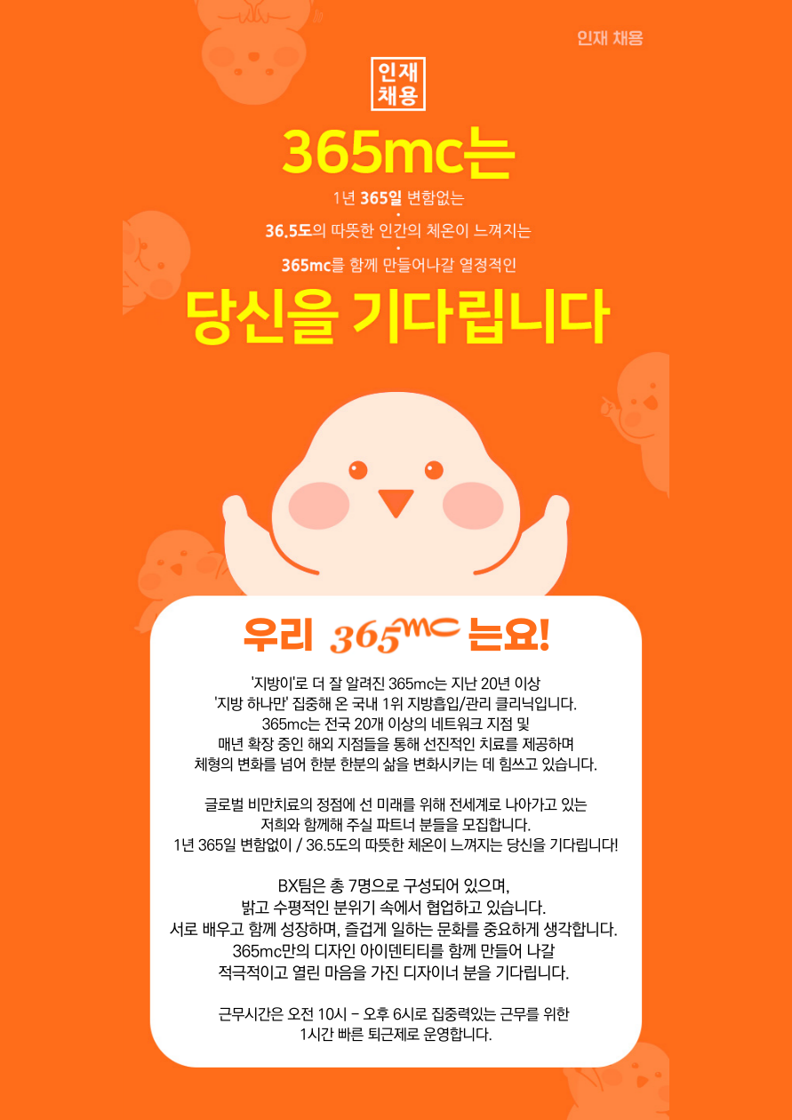 (주)365mc BX(디자인)팀 인턴 채용
