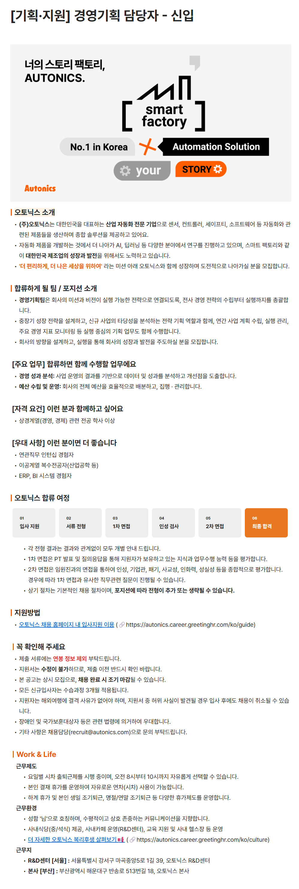 [오토닉스] [기획·지원] 경영기획 담당자 - 신입