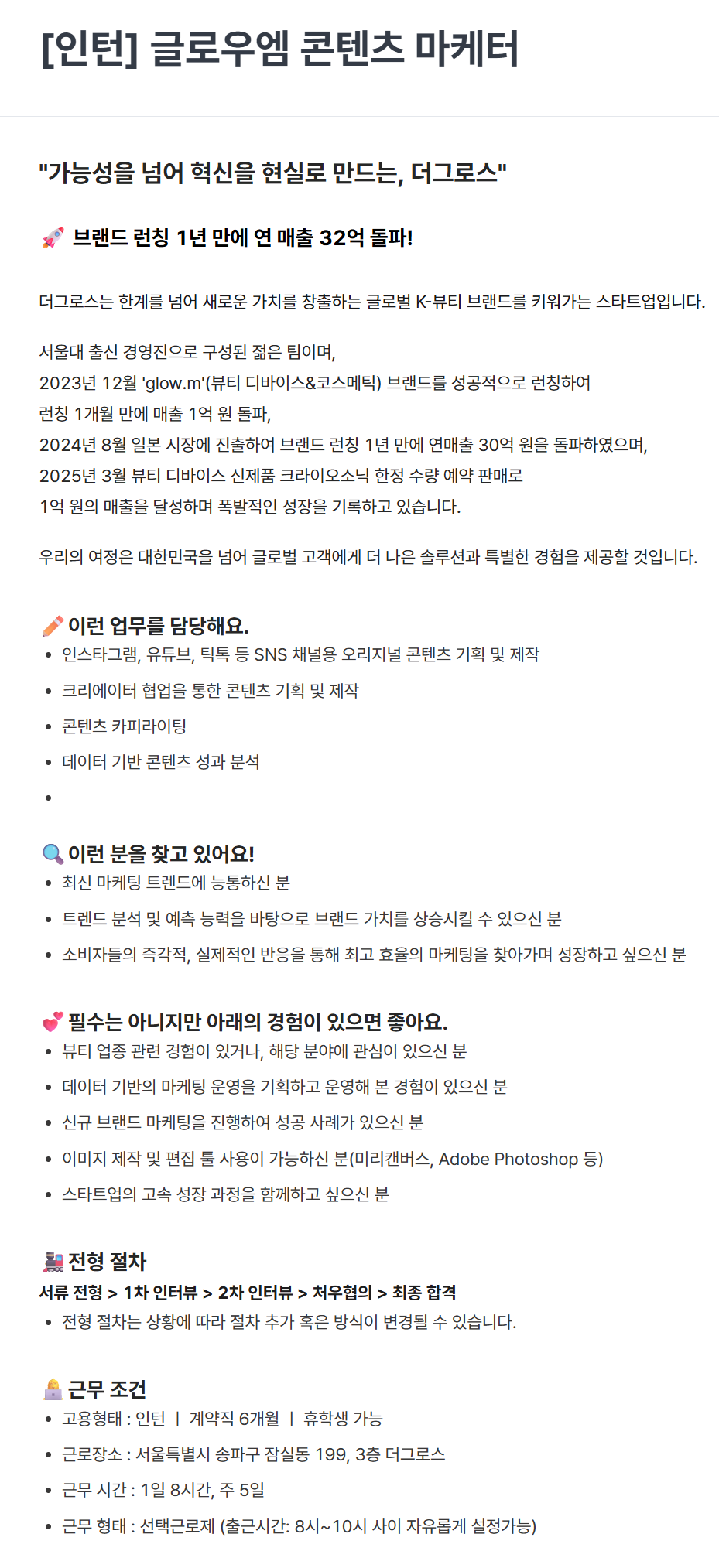 [더그로스] [인턴] 글로우엠 콘텐츠 마케터