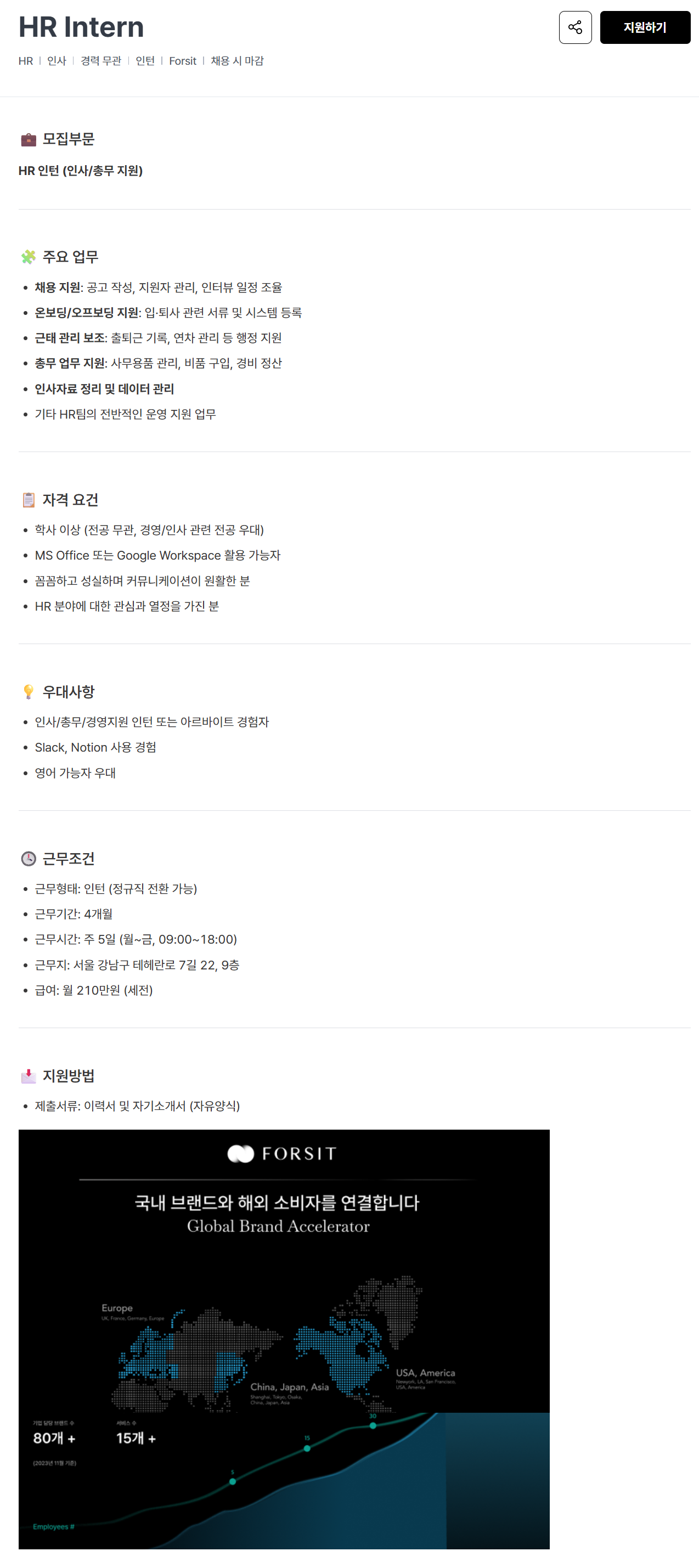 - 기타 HR팀의 전반적인 운영 지원 업무