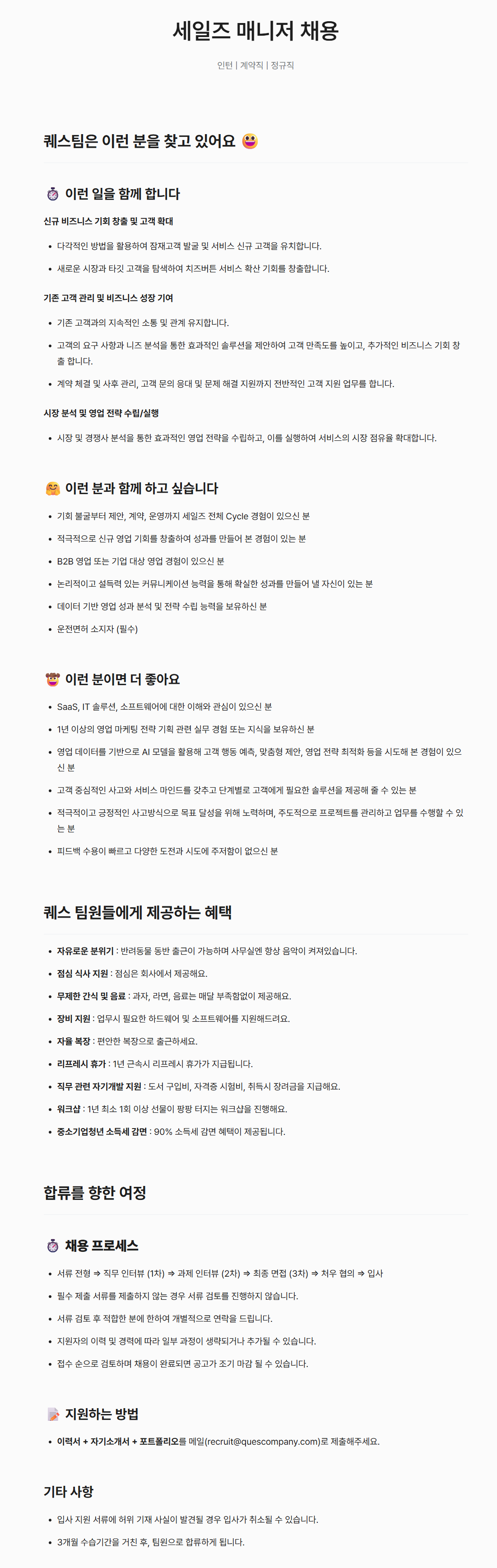- 기회 불굴부터 제안, 계약, 운영까지 세일즈 전체 Cycle 경험이 있으신 분