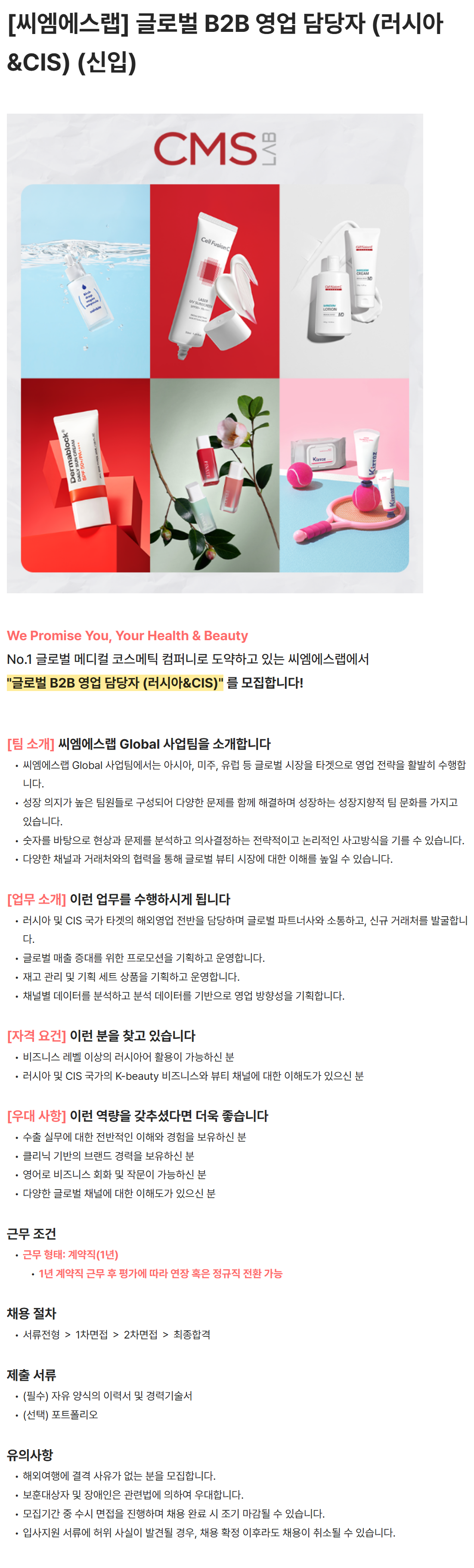 [씨엠에스랩] 글로벌 B2B 영업 담당자 (러시아&CIS) (신입)