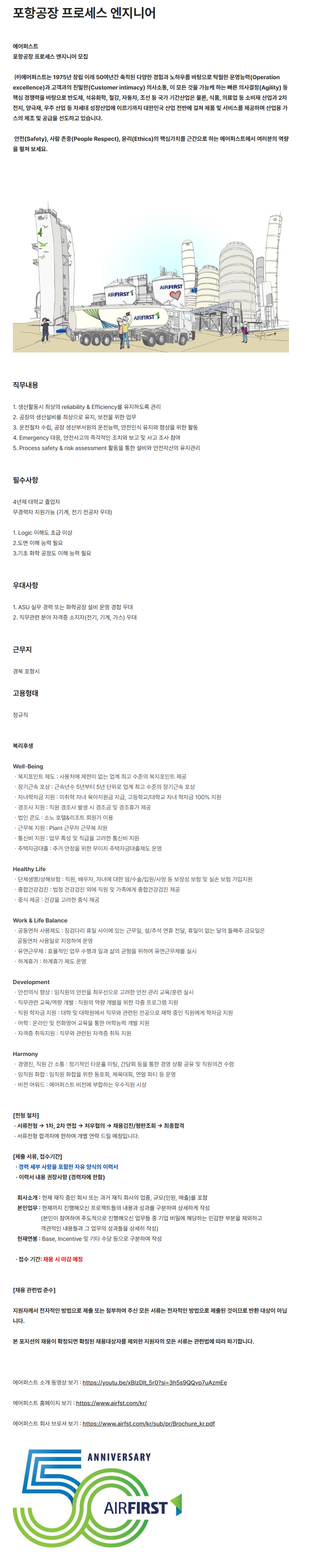 [에어퍼스트] 포항공장 프로세스 엔지니어 채용