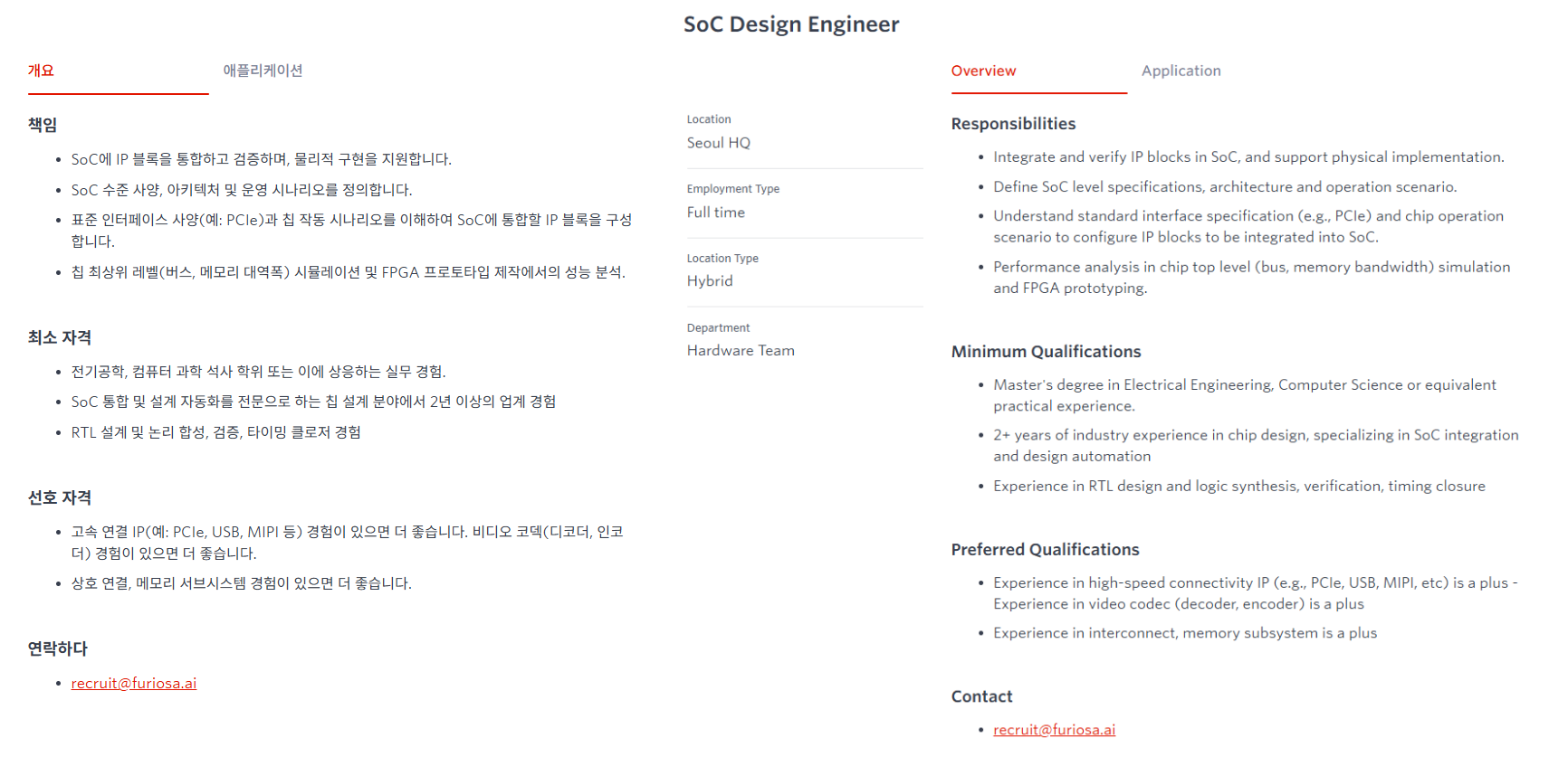 [퓨리오사에이아이] FURIOSA AI [Hardware Team] 채용