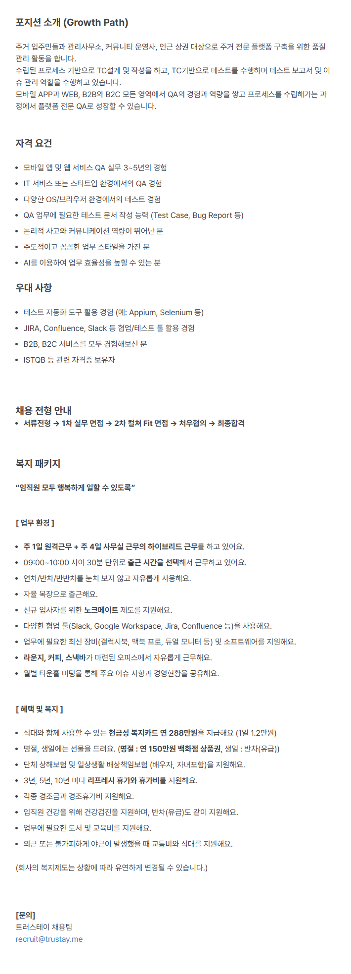 [트러스테이] 모바일 APP 및 WEB 서비스 QA 채용