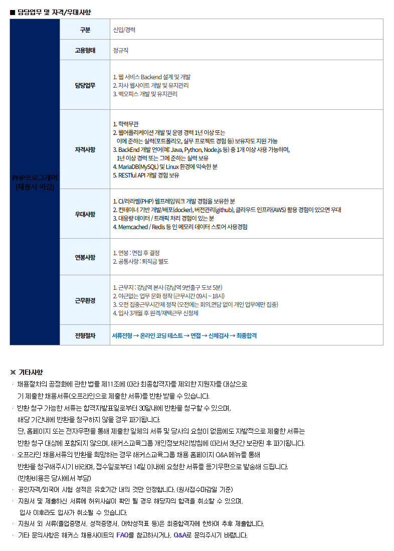 [해커스교육그룹] [신입/경력][개발] PHP 프로그래머 채용