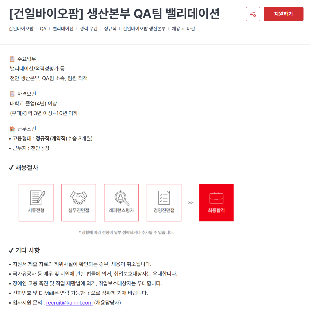 • 근무지 : 천안공장
