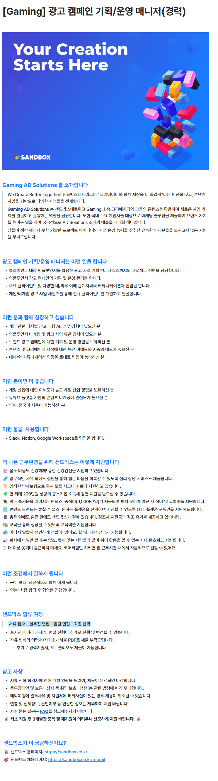 [Gaming] 광고 캠페인 기획/운영 매니저(경력)