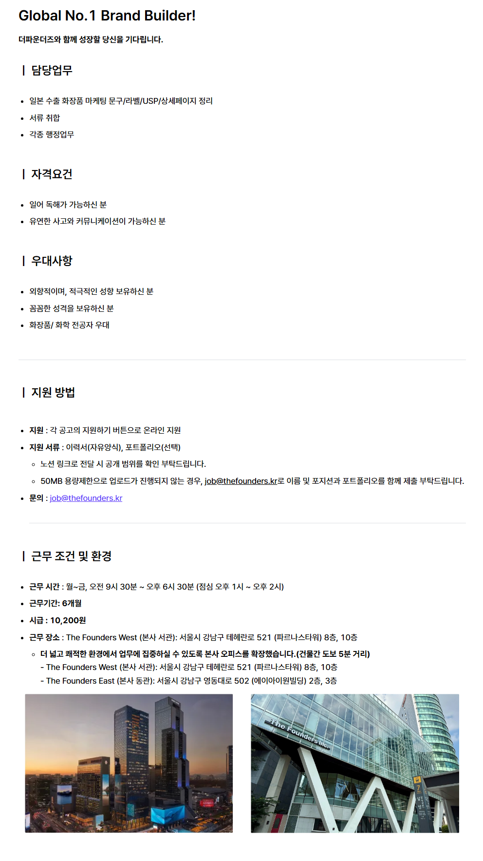 #일본수출 #수출업무 #RA #RegulatoryAffairs #화장품인허가 #일본어 #일본어가능자 #서류관리 #행정업무 #사무보조 #사무보조알바 #아르바이트 #SCM #운영지원 #뷰티채용 #화장품채용 #삼성역 #K뷰티 #아누아 #ANUA #더파운더즈 #TheFounders