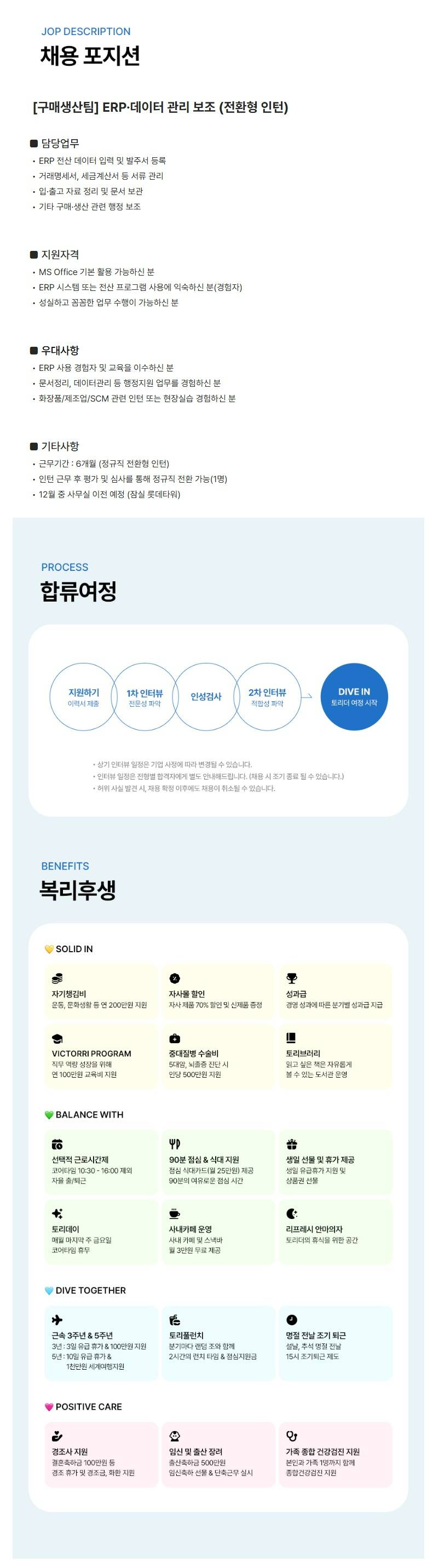 [토리든] [구매생산팀] ERP·데이터 관리 보조 (전환형 인턴)