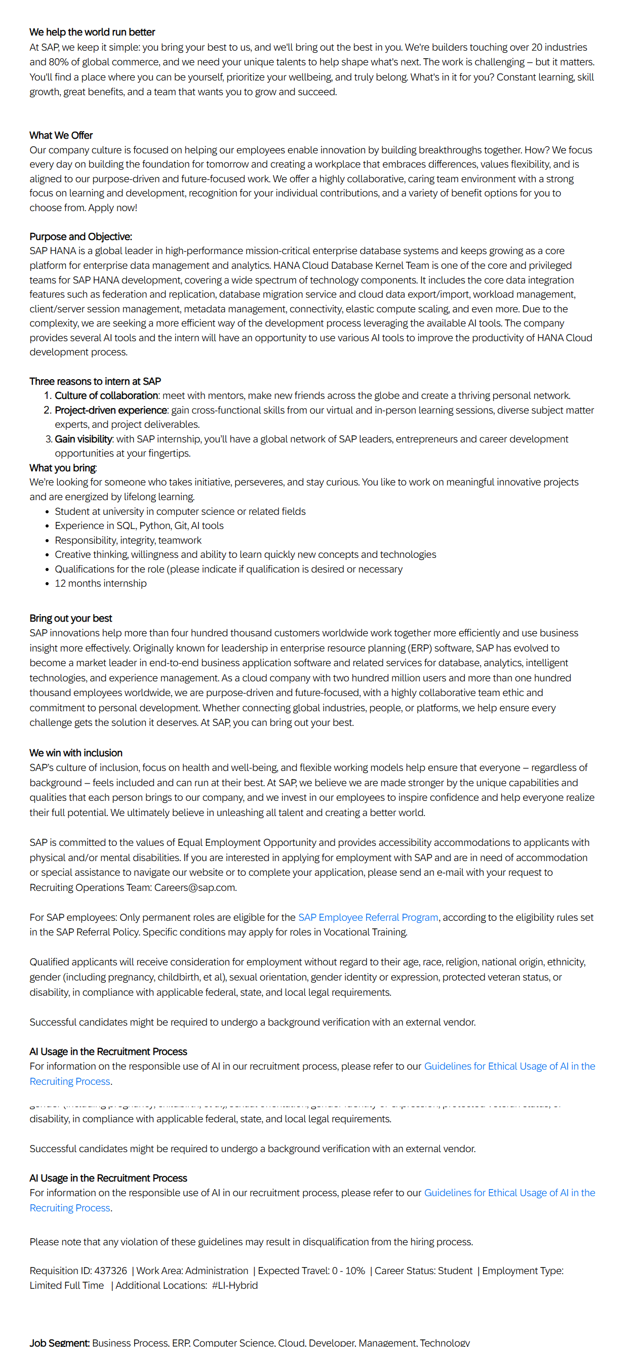 - Gain visibility: with SAP internship, you’ll have a global network of SAP leaders, entrepreneurs and career development opportunities at your fingertips.