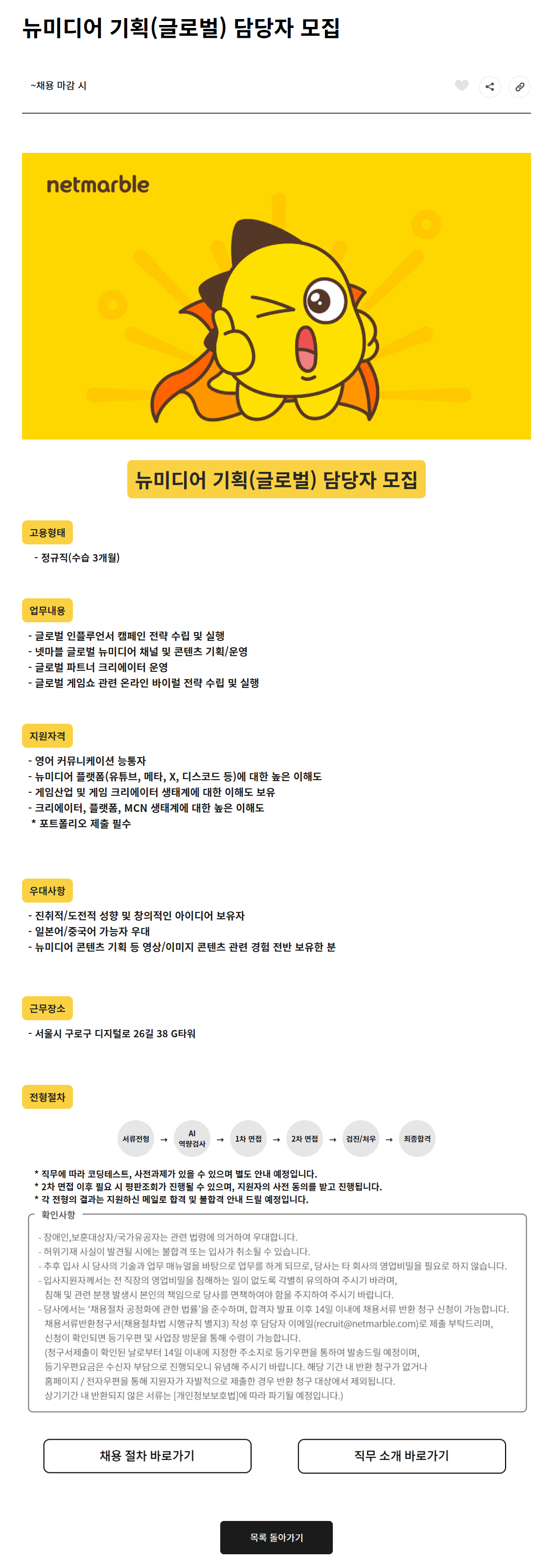 · 넷마블 글로벌 뉴미디어 채널 및 콘텐츠 기획/운영