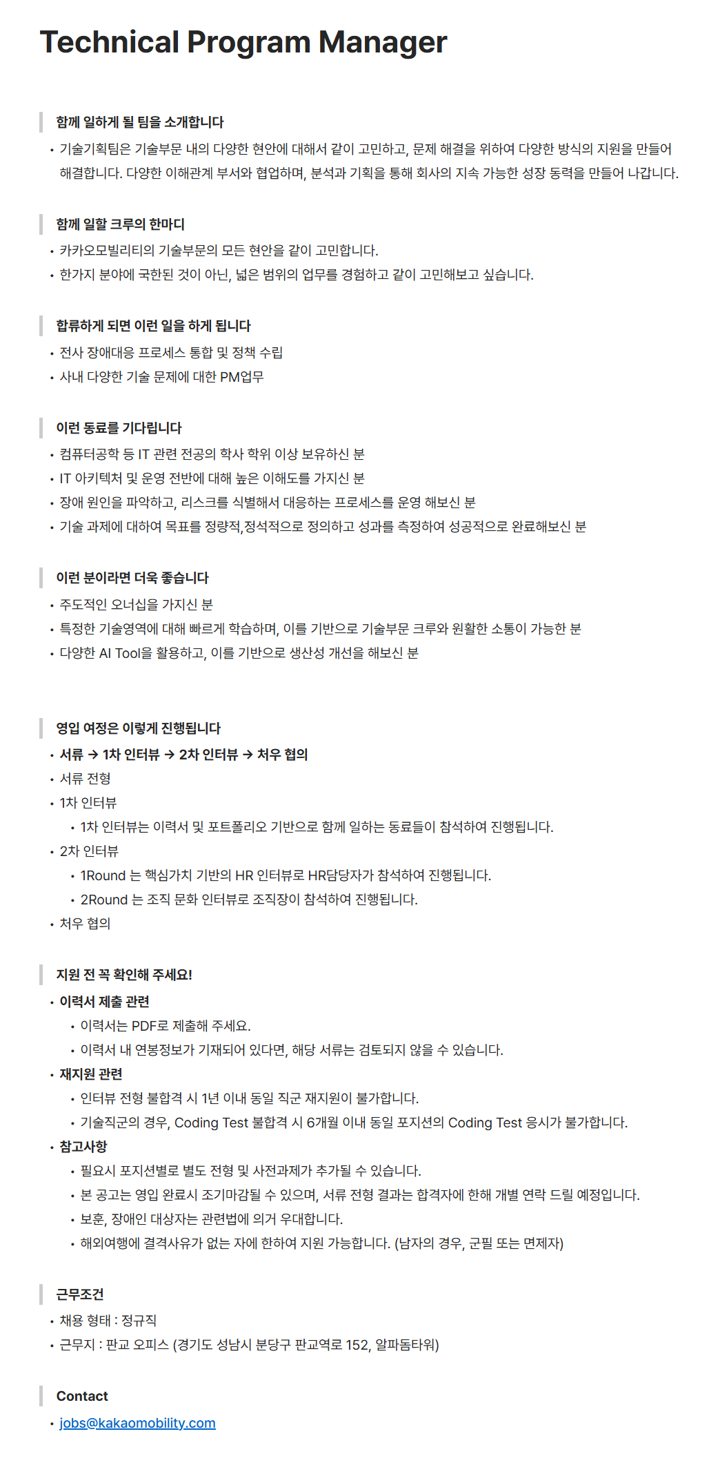 [카카오모빌리티] Technical Program Manager