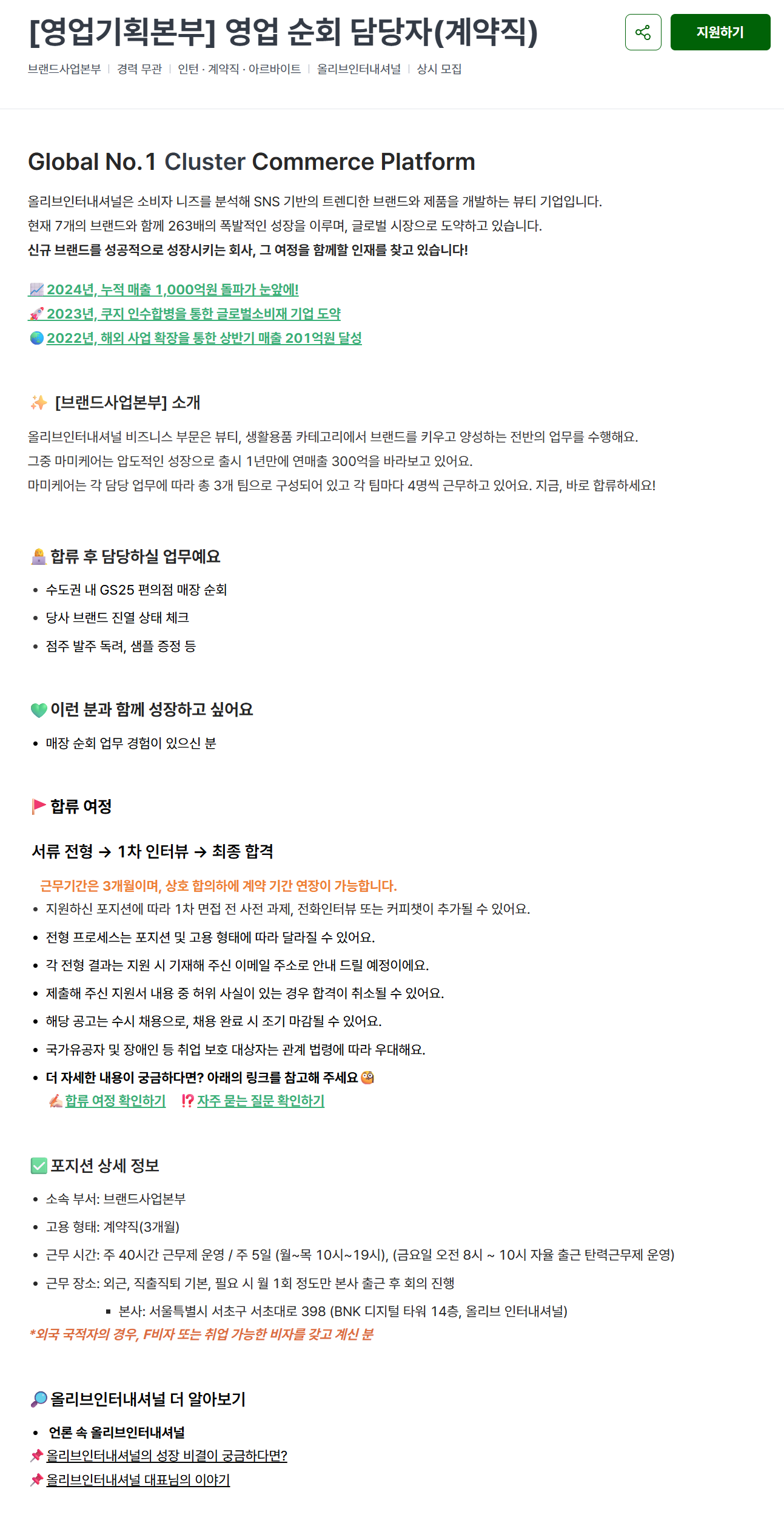 [올리브인터내셔널] [영업기획본부] 영업 순회 담당자(계약직)
