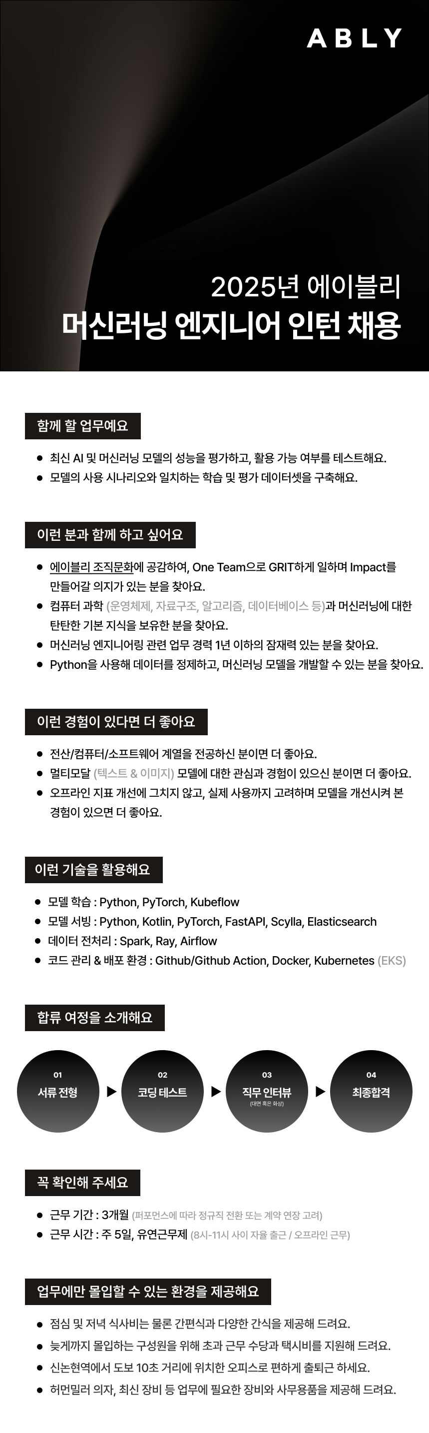 [에이블리] 머신러닝 엔지니어 인턴 (채용 연계형)
