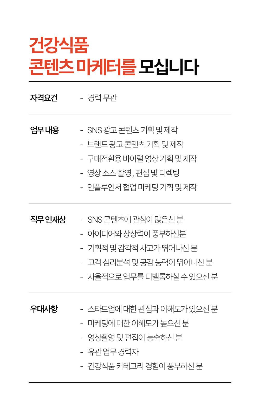 [건강식품 멀티커머스] 온라인 콘텐츠 마케터 모십니다 :)