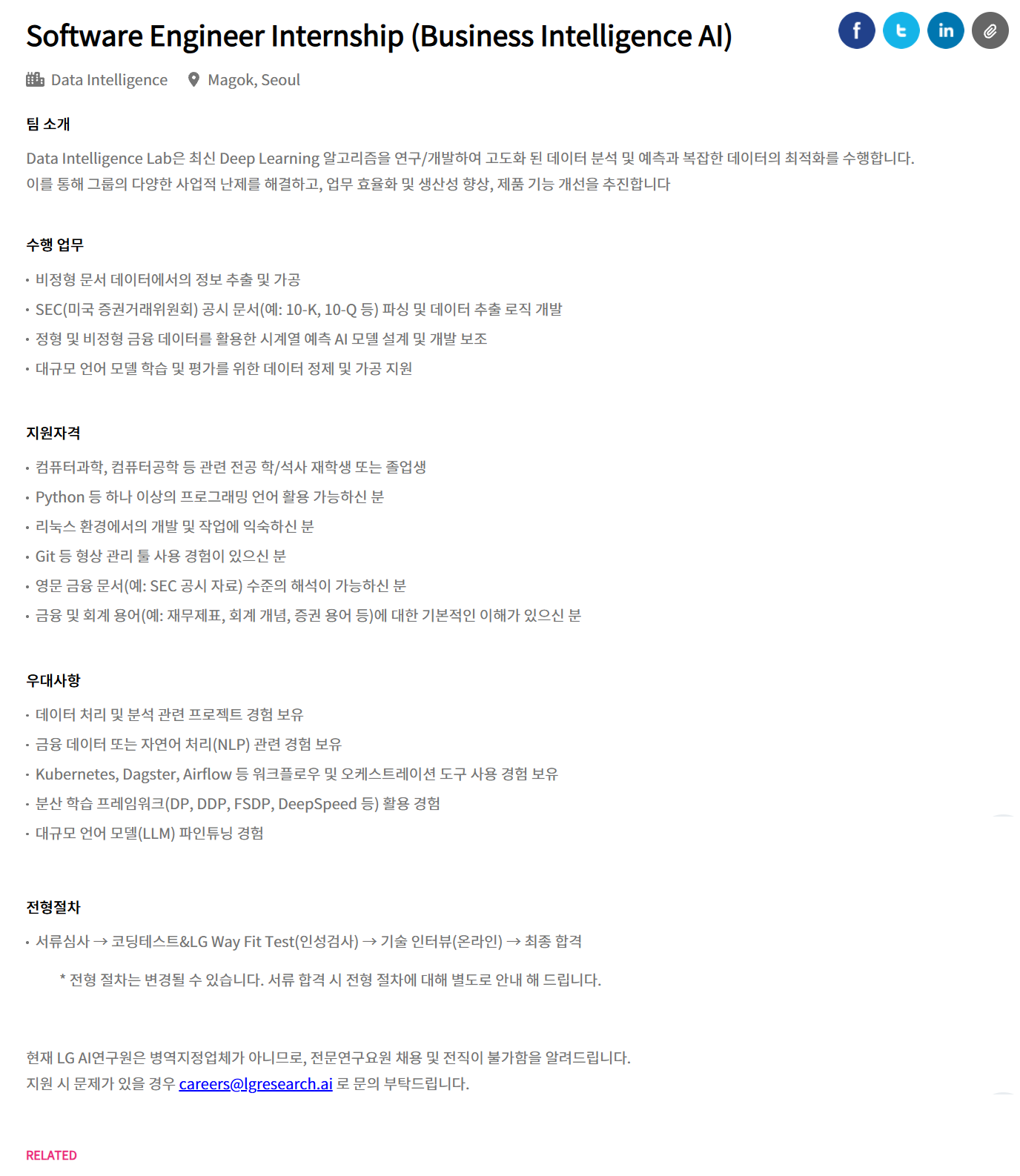 [(주)엘지경영개발원 AI연구원] Software Engineer Internship (Business Intelligence AI)