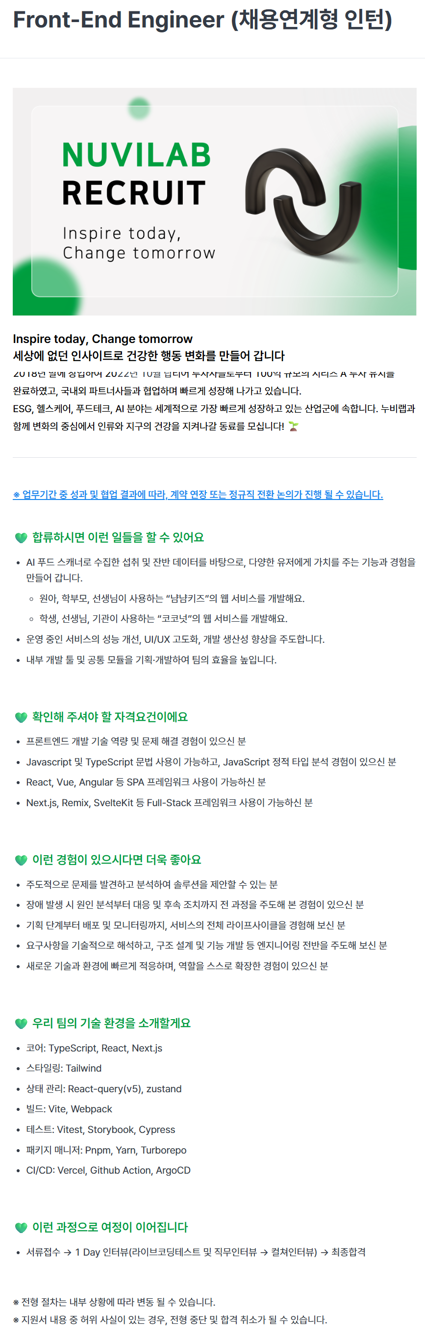 [누비랩] Front-End Engineer (채용연계형 인턴)