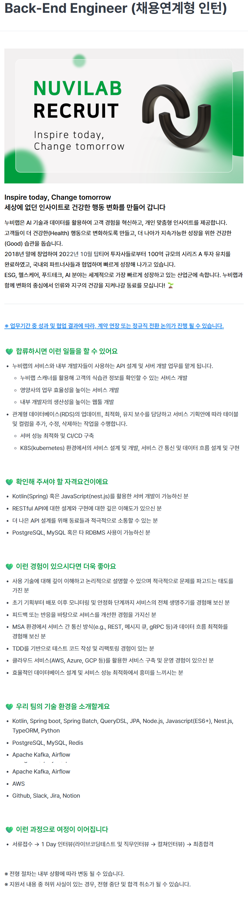 [누비랩] Back-End Engineer (채용연계형 인턴)