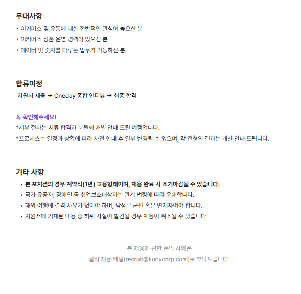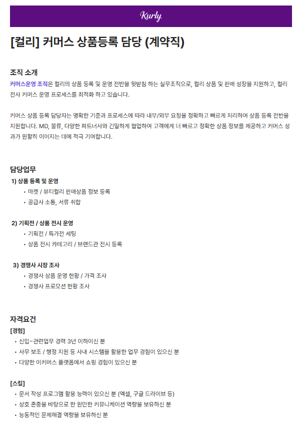 [컬리] 커머스 상품등록 담당 (계약직)
