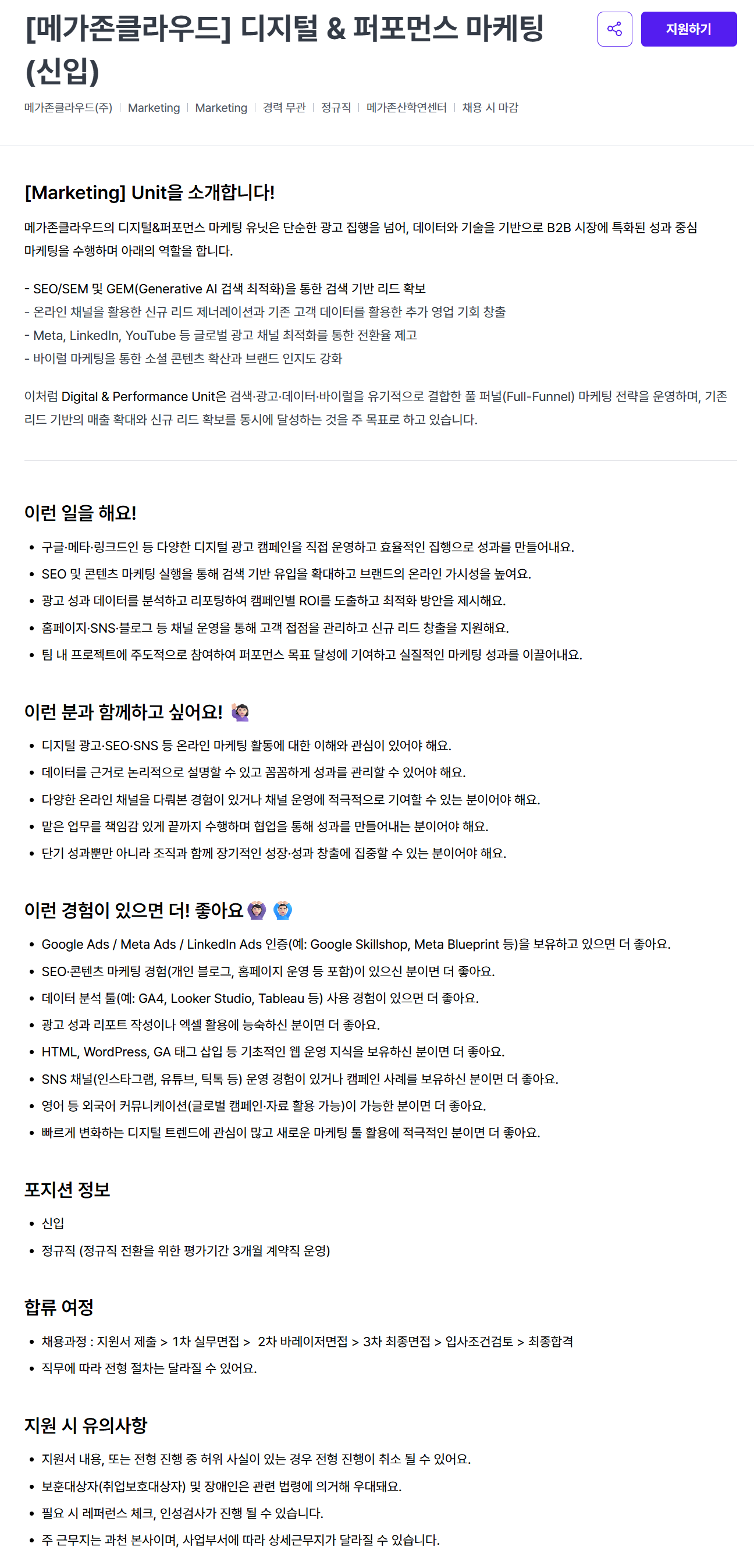 [메가존클라우드] 디지털 & 퍼포먼스 마케팅 (신입)