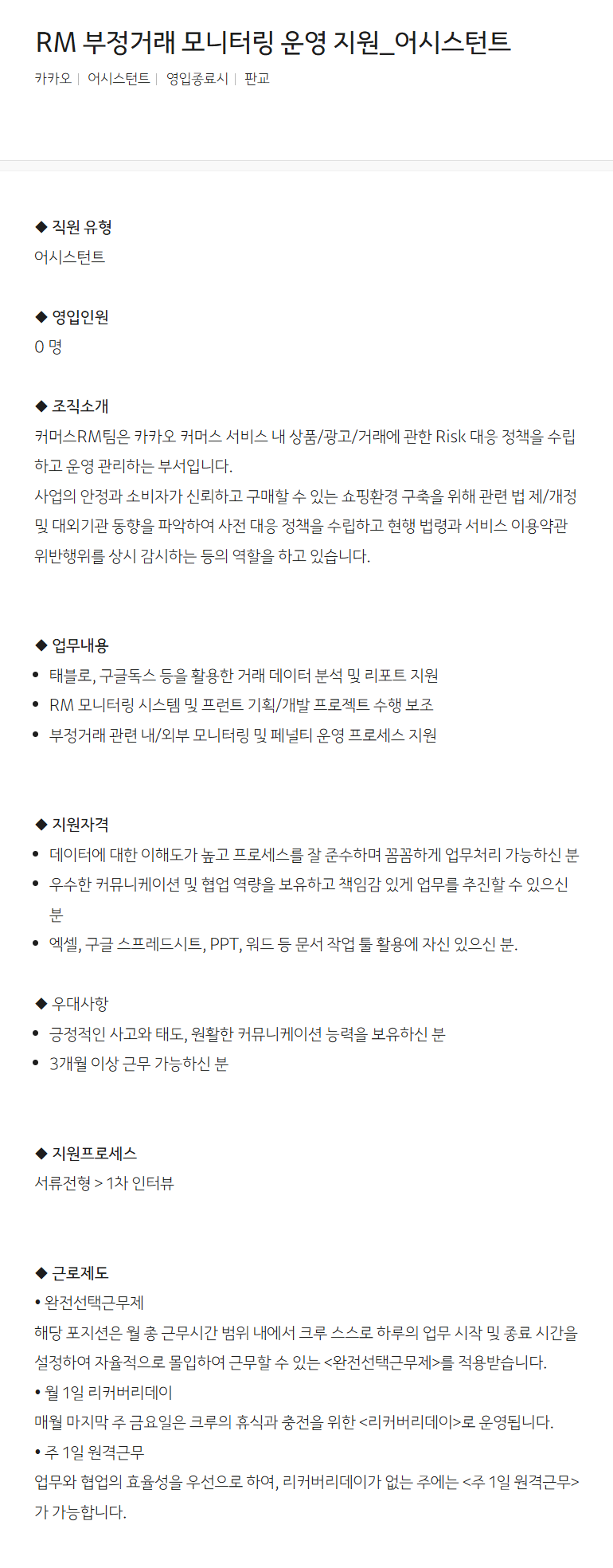 [카카오] RM 부정거래 모니터링 운영 지원_어시스턴트