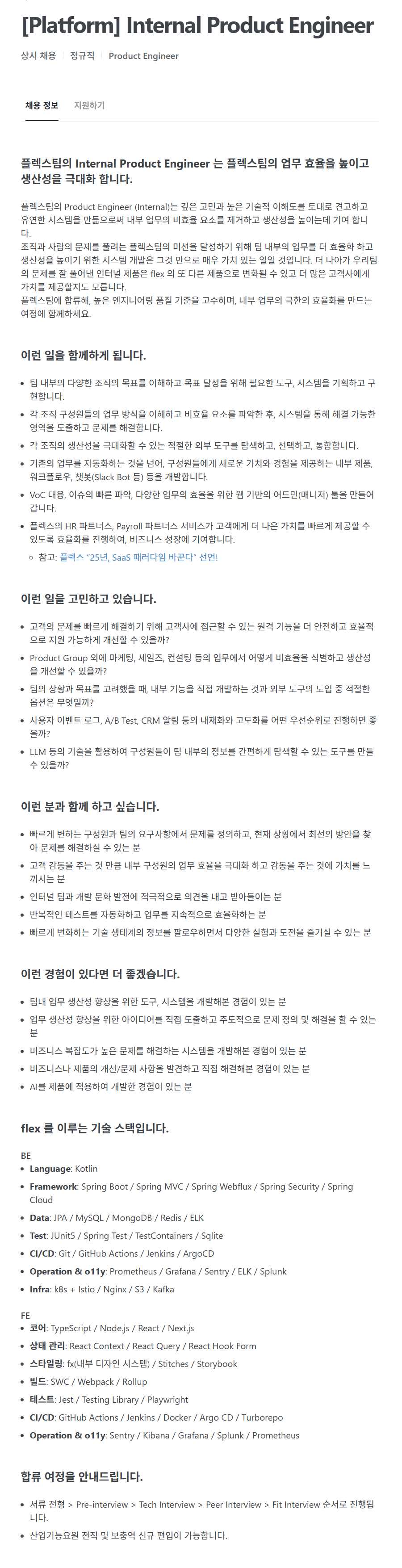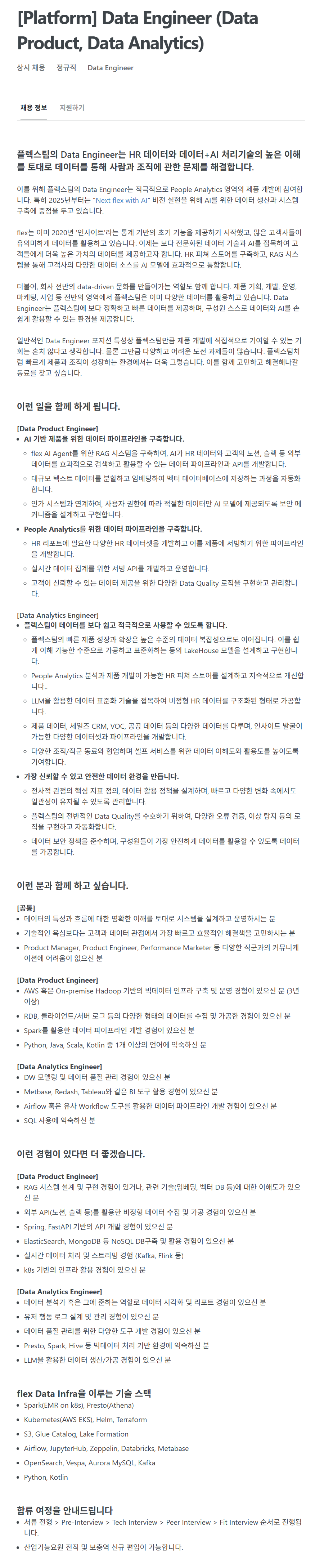 서류 전형 > Pre-interview > Tech Interview > Peer Interview > Fit Interview