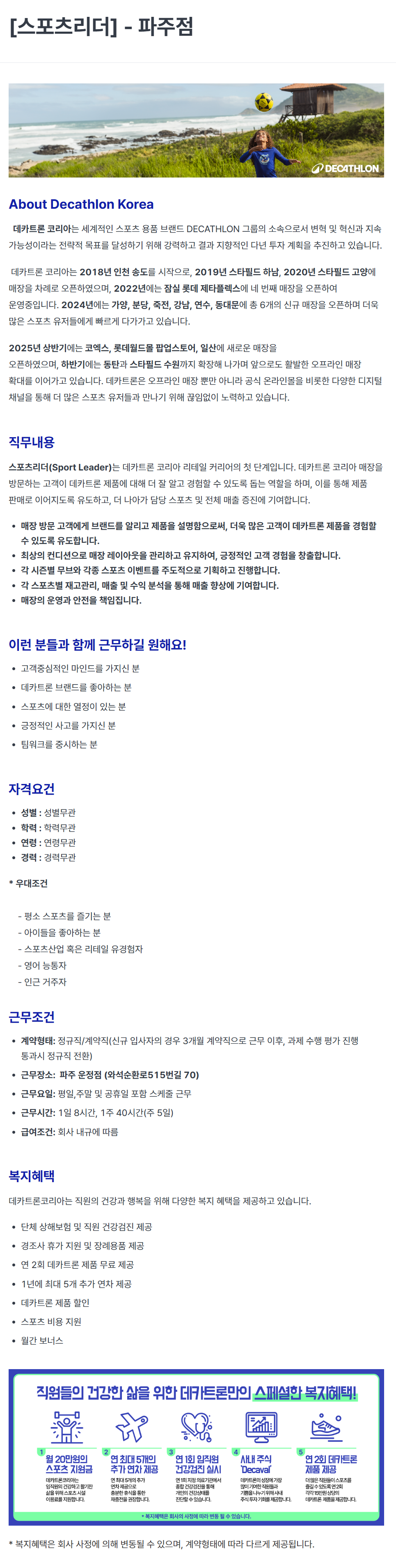 [데카트론코리아] [스포츠리더] - 파주점 채용