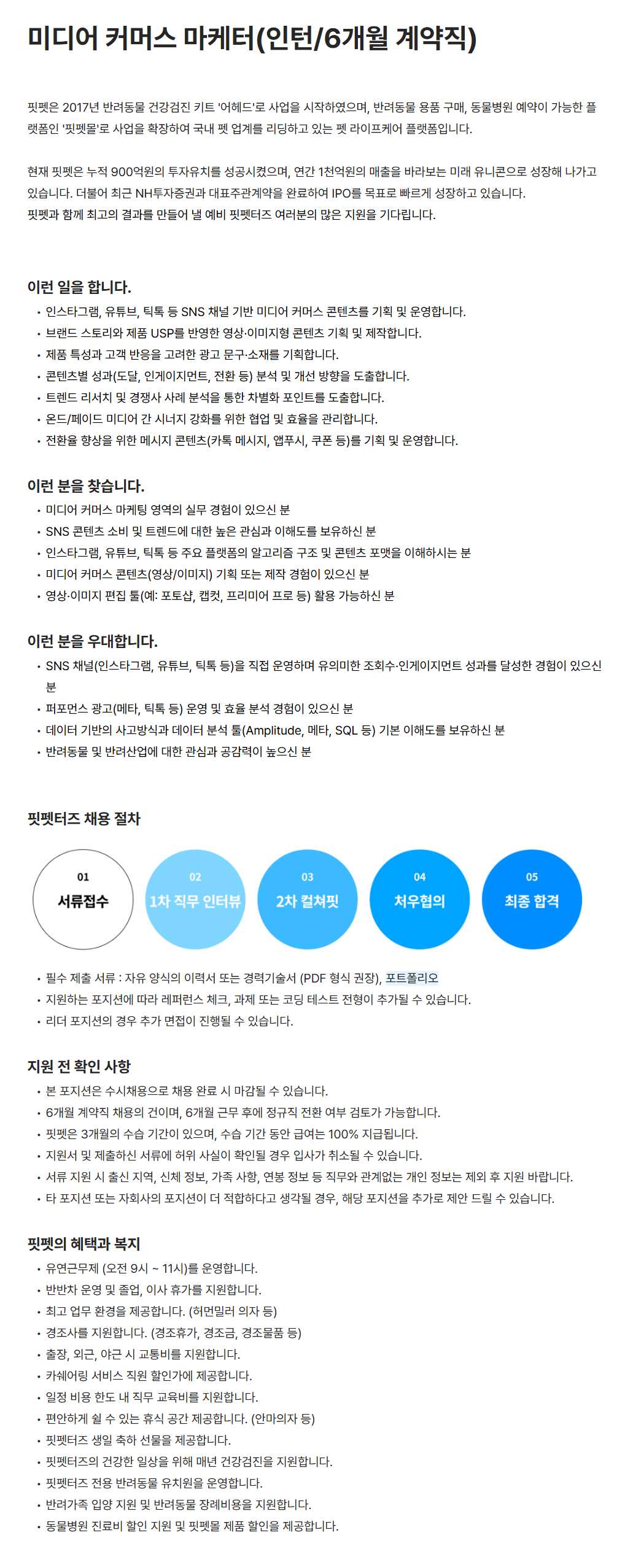 [핏펫] 미디어 커머스 마케터(인턴/6개월 계약직)
