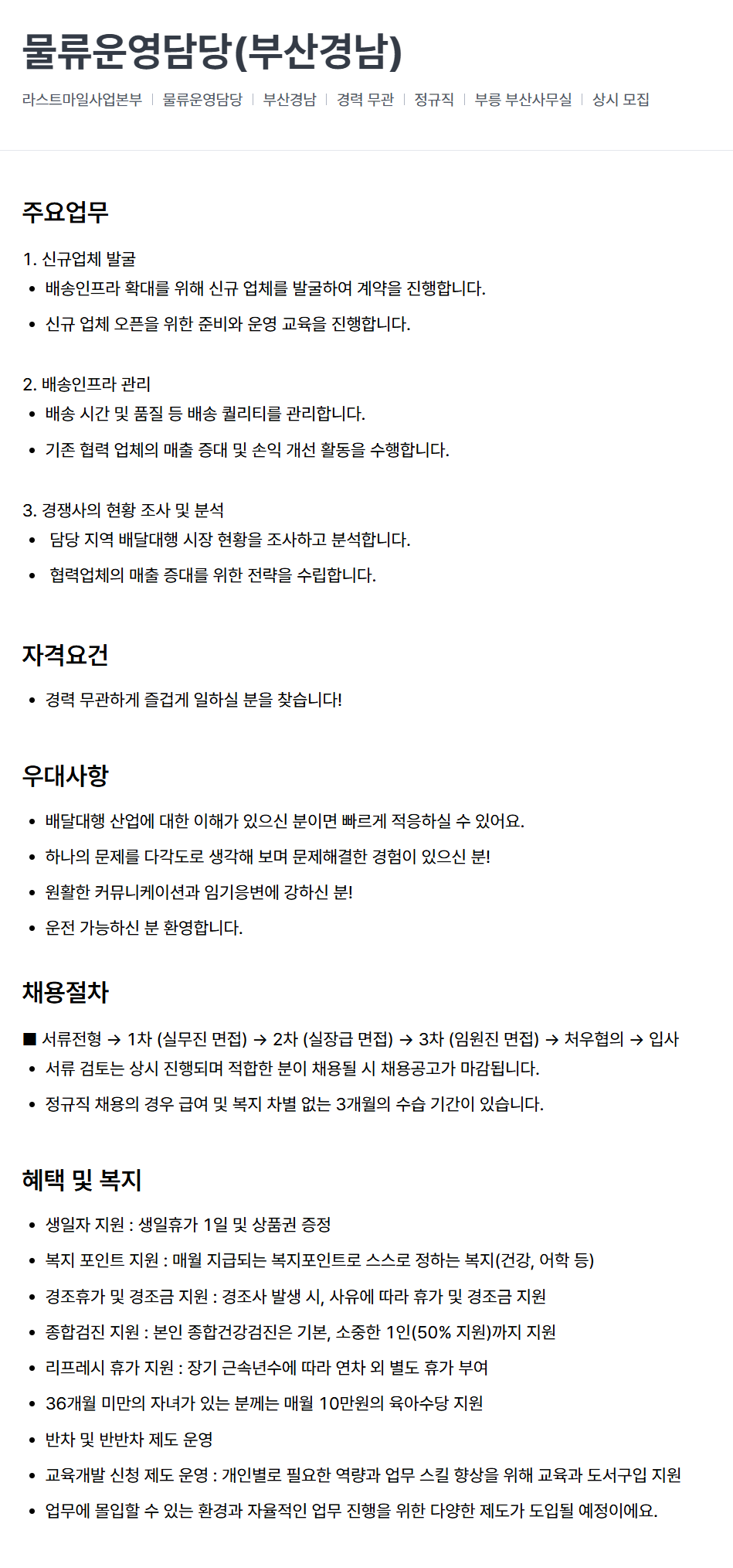 물류운영담당(부산경남)