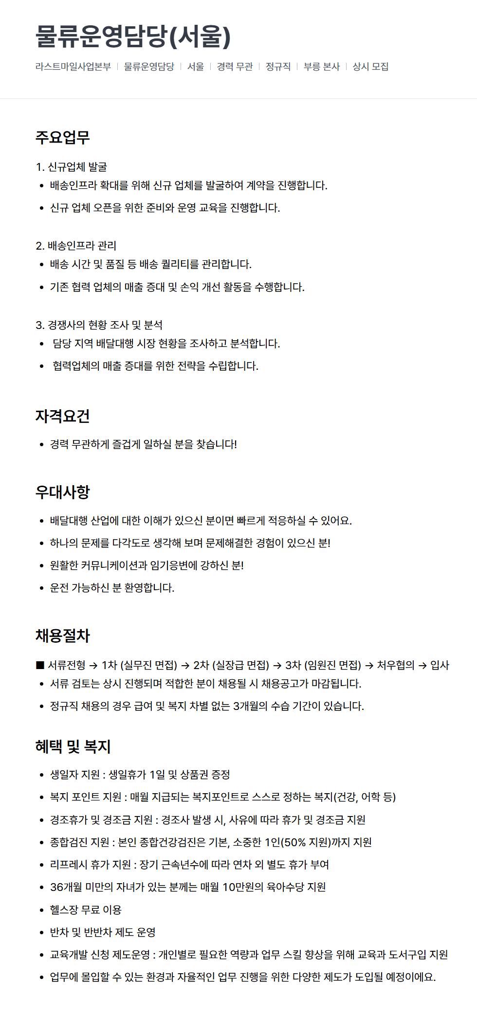 물류운영담당(서울)