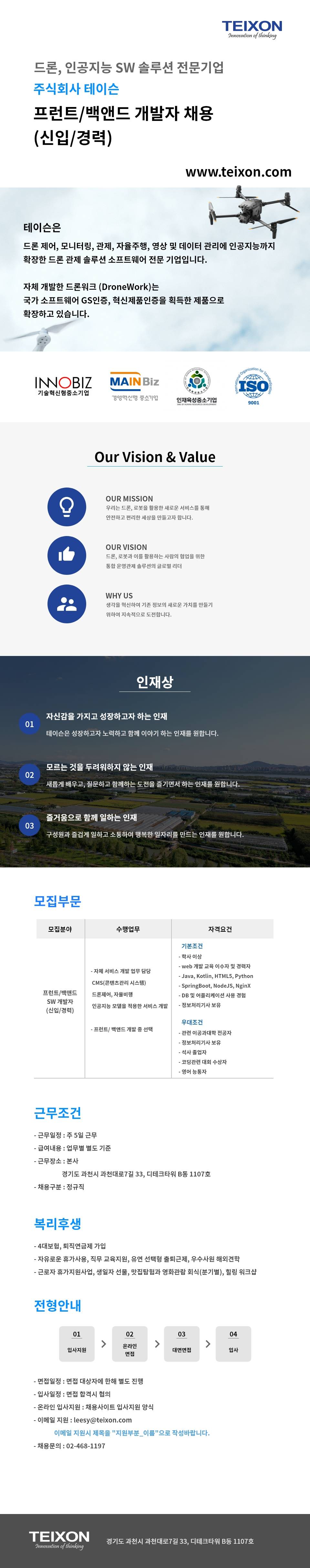 [테이슨] 프런트/백앤드 SW개발자 채용 (신입/경력)